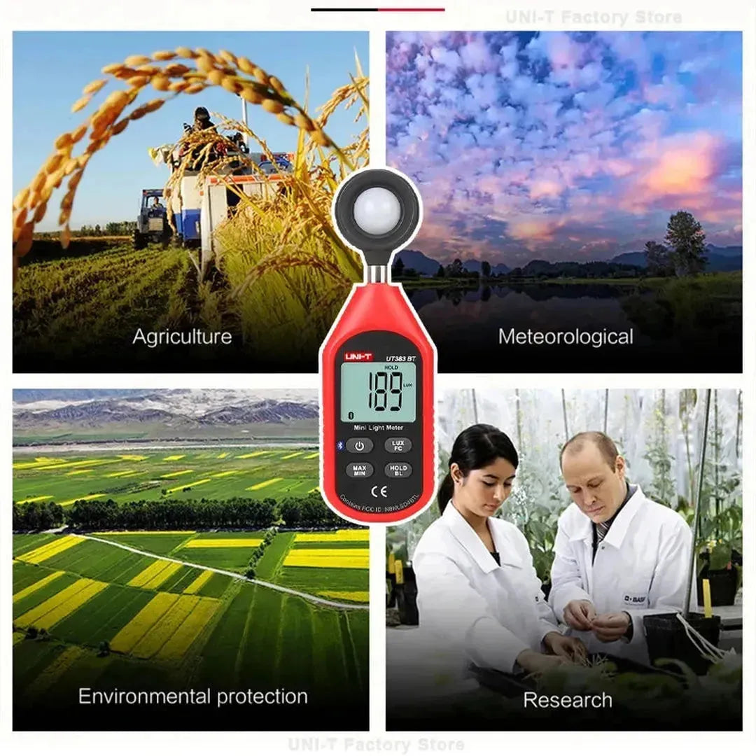 UNI-T UT383 e UT383BT sono luxometri professionali progettati per la misurazione precisa della luce in vari campi. Il modello UT383BT offre connettività Bluetooth aggiuntiva per il trasferimento dei dati.