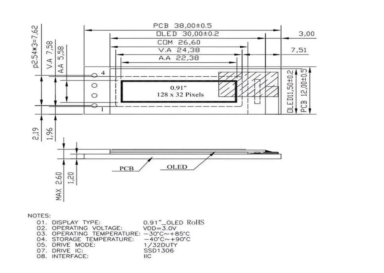 Specifiche del display OLED I2C 128 x 32 pixel (bianco)